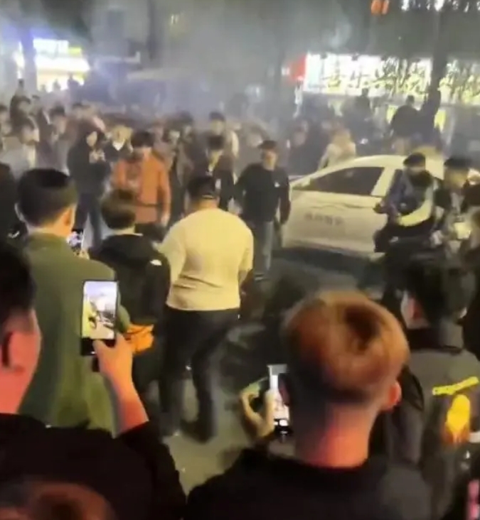 有人因为速度过快,来不及刹车,追尾后摔倒在地。轰鸣声、呐喊声、音乐声不断,引来不少市民围观。警方随后迅速出动,对现场进行管控。多数网友对此是担忧的。