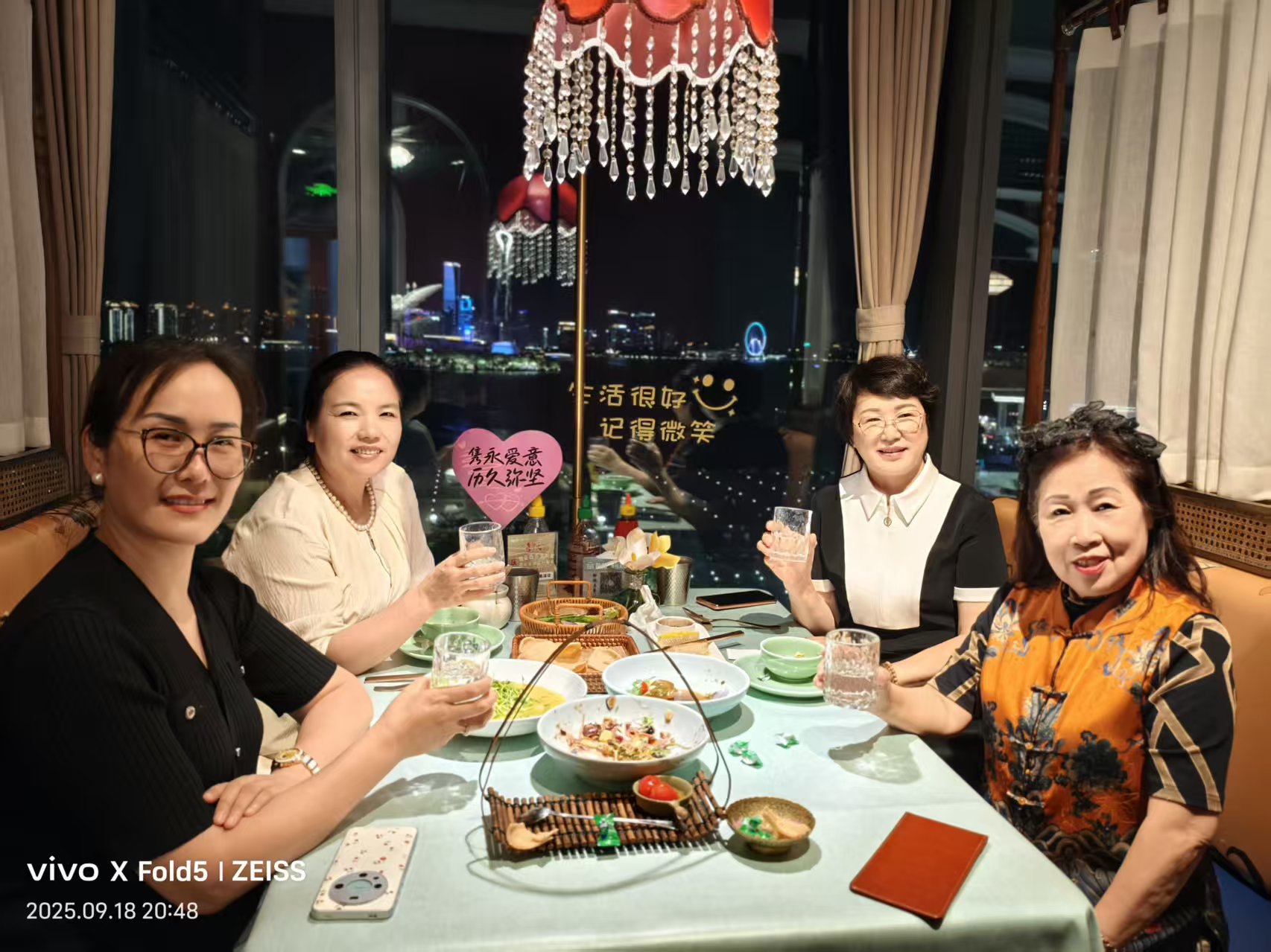 在苏州中心那座将金鸡湖夜景揉进琉璃灯火的餐厅里(46层的高空视角,把东方之门的轮廓与湖畔流光都酿成了杯中酒的底色),四位在时代浪潮里书写传奇的姐妹,正将一场小聚,过成了人生的诗行。