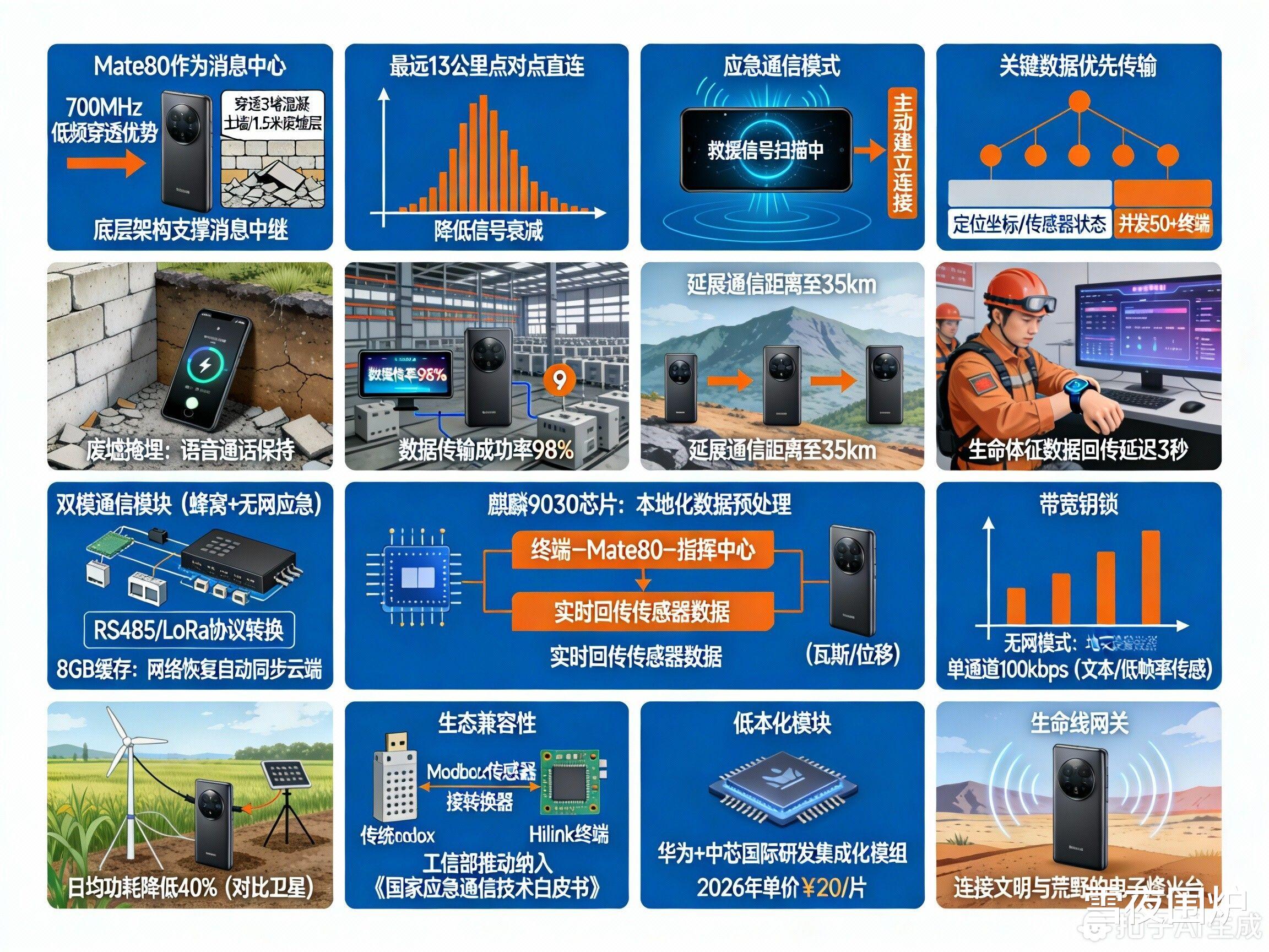 低成本终端适配华为联合中芯国际研发集成化通信模组,预计2026年单价降至¥20/片,推动老旧设备改造。