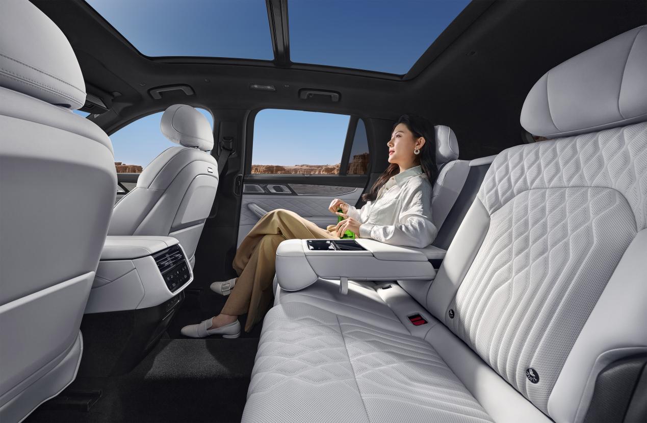 内饰设计延续领克一贯的高质感路线。日光米内饰色调与Nappa真皮座椅、木纹饰板搭配,形成温润的触感体验。二排座椅采用行政级布局,宽度1366mm、坐垫深度540mm、最大腿部空间1130mm。座椅提供通风、加热与8点式按摩功能,同时配备多功能中央扶手、小桌板及2米大床模式。无论商务出行还是家庭旅行,都能保持舒适性与私密性。前排副驾电动腿托及方向盘加热、记忆功能的加入,进一步完善了整体舒适体系。