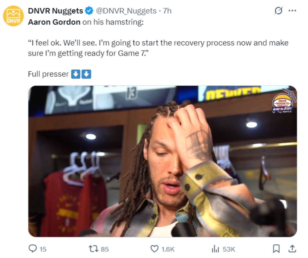 这不是总决赛的最后一场,戈登跟掘金的大合同长约马上要开始,无论从哪个角度来看,保护身体对戈登和掘金都更有利。