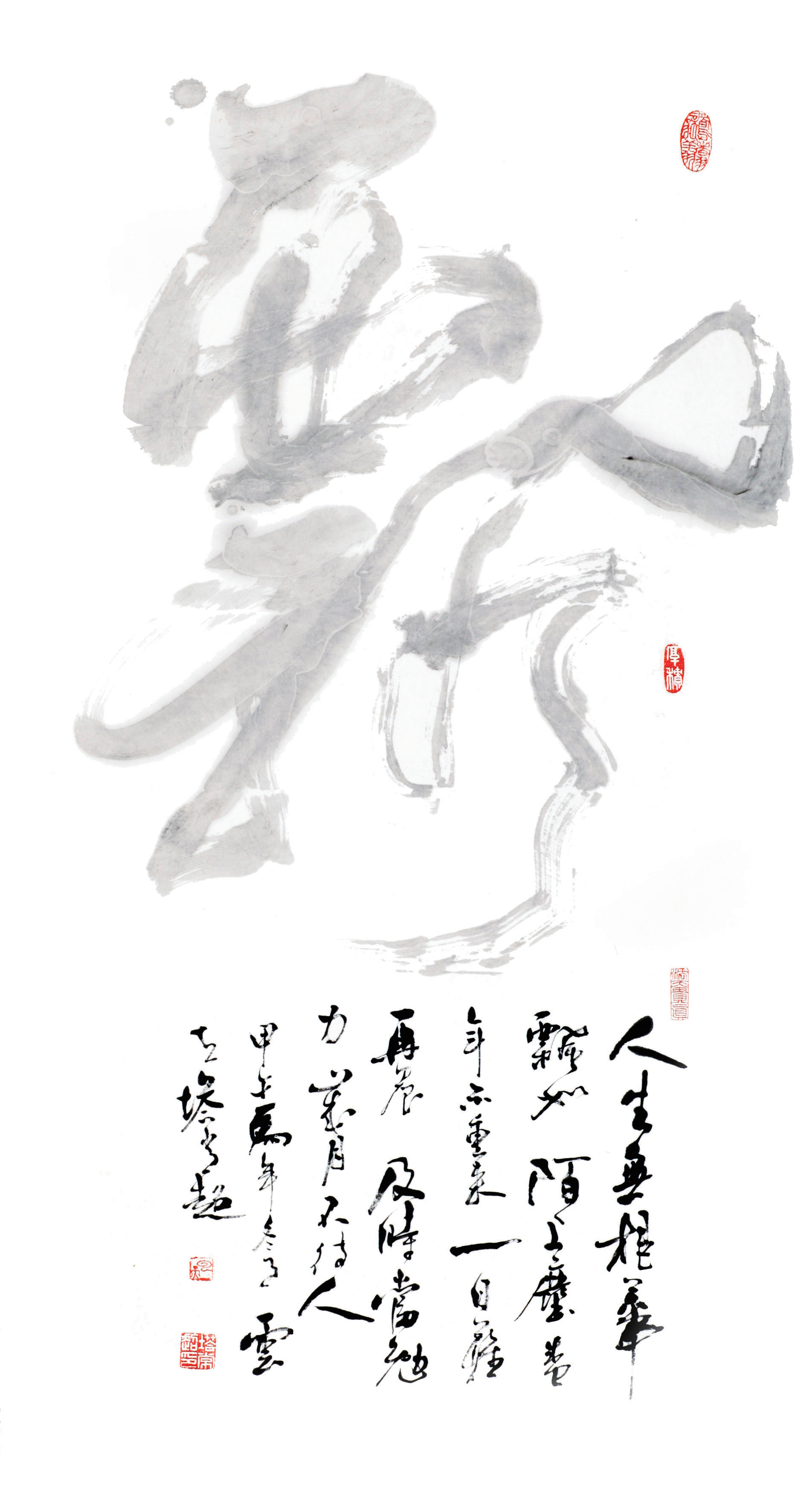 书法从诞生之日起,就打上了深深的文化烙印。“诗为书之魂”,“文为书之基”。而在塔常超看来,“书法艺术是综合性的超然艺术,涉及到诸多门类,比如,音乐、美术、舞蹈、体育、军事、文学、历史、太极、佛学、自然、物像,等等。舞蹈、形体与语言表现,音乐中的抒情与华彩,佛学的空灵与深微妙法,文学中的喻义与广义,物像中的避让、顾盼、相背,都和书法有着千丝万缕的直接和间接的关系。书法高就高在无法登顶,深就深在难探底。”