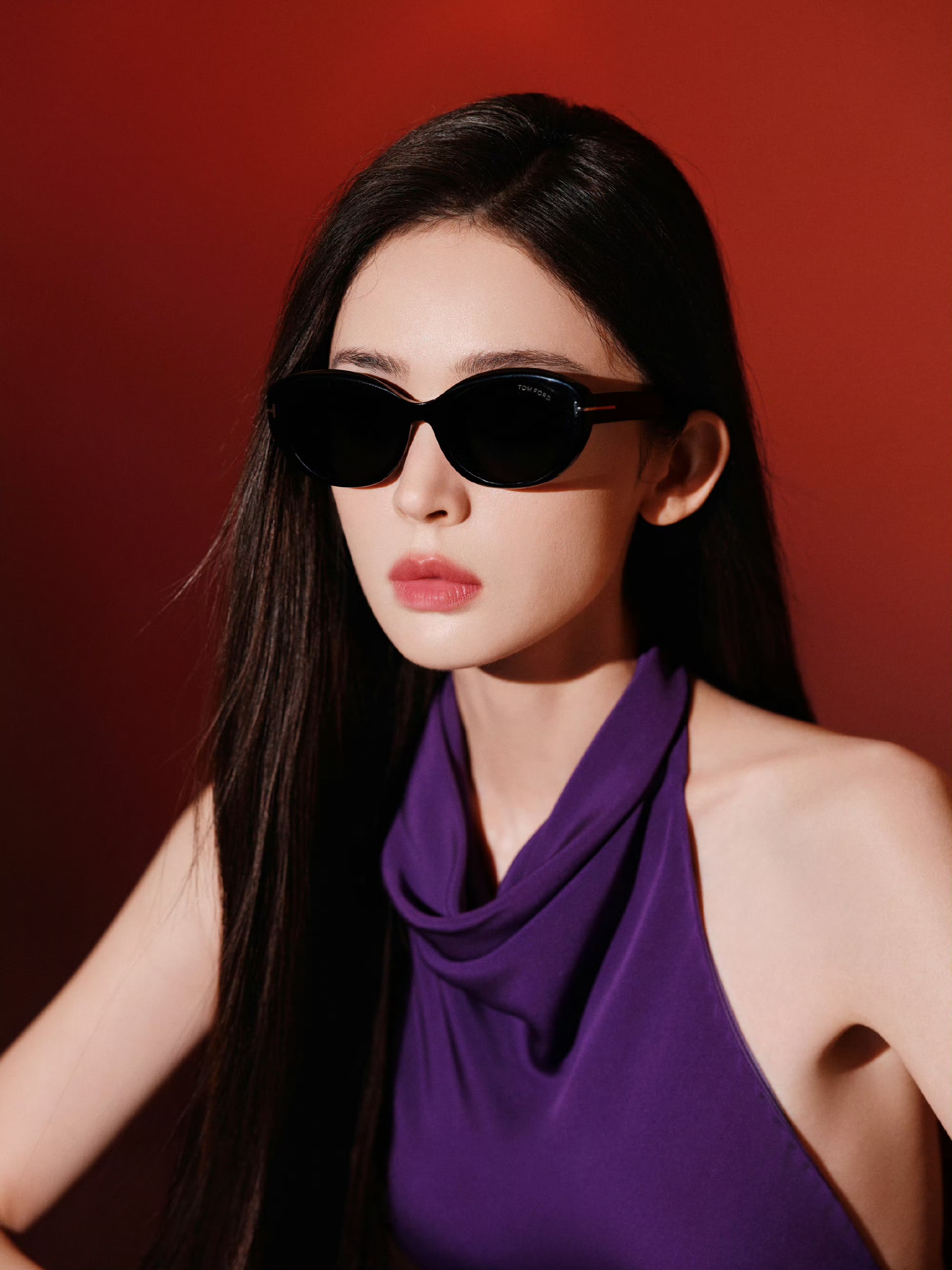 古力娜扎身着 TOM FORD 亮紫色真丝露背连衣裙