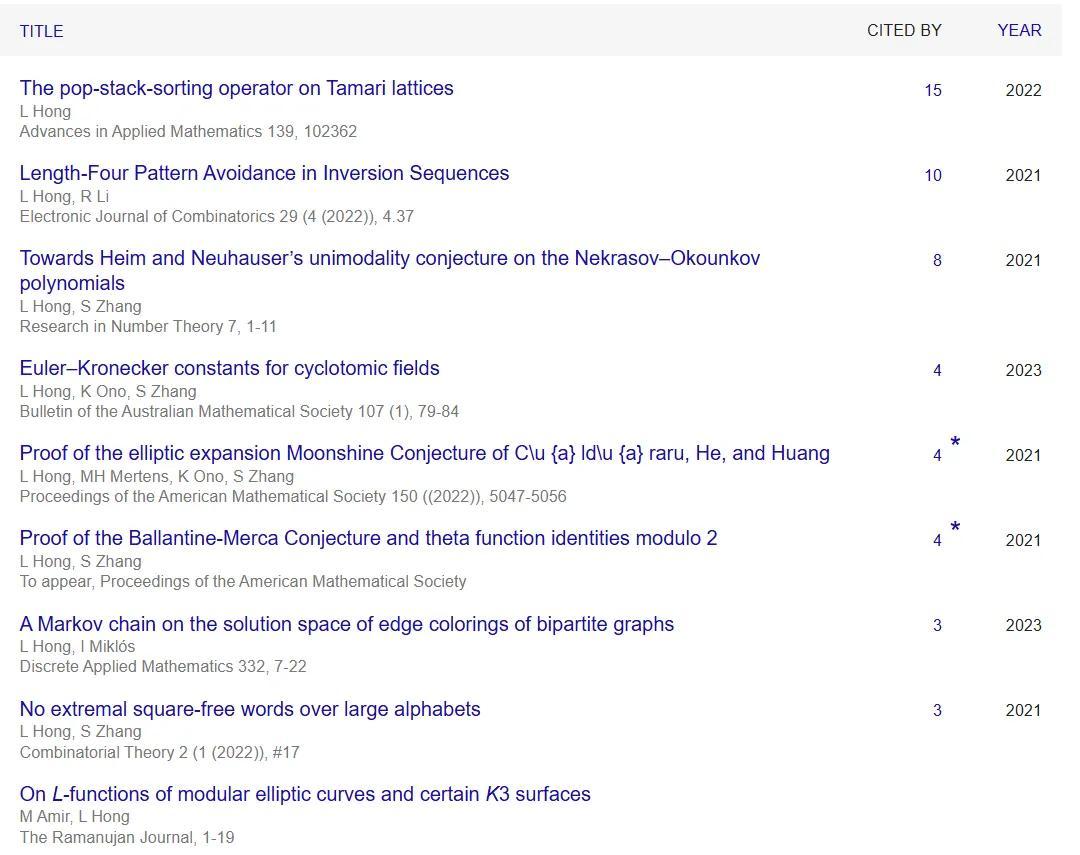 其中大多数还是和张盛桐(本科期间登上数学四大顶刊)合作完成,并刊登在《美国数学会会报》、《拉马努金期刊》上。