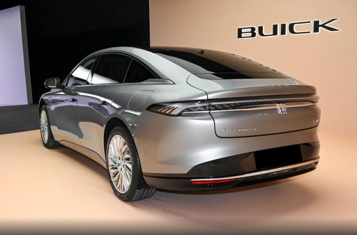 车侧采用低趴宽整的流线型设计,平直流畅的线条元素贯穿于车身型面,增强了视觉高级感。区别于别克在售的轿车产品,别克至境L7的B柱后方延伸更为明显,同时缓缓下滑的车顶弧度保证了后排空间的宽适度,搭配后排隐私玻璃的使用,强化了整车的商务气息。在轮毂配置方面,新车提供多种轮毂造型可选,规格对应19英寸和20英寸两种,密幅式风格既强调低风阻特性,也有较为鲜明的科技属性。此外,新车还将搭载Momenta R6飞轮大模型,部分车型采用车顶激光雷达感知方案,尾部集成蓝色驾驶辅助信号指示灯,支持城市导航辅助驾驶、全车位泊车辅助等功能。