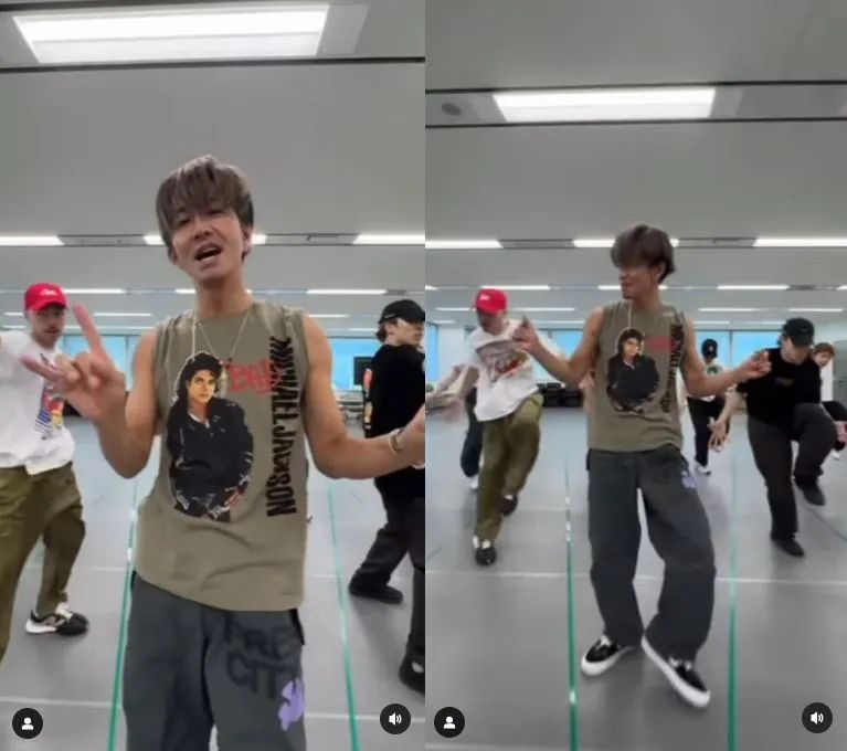 从流出的视频可以看见,23秒的视频里,男神木村拓哉站在C位,和8名伴舞一起共同演绎《Head Shot》的MV舞蹈。这个舞蹈是由知名的舞团s**t kingz的Kazuki负责编舞,而木村拓哉身穿一件印有麦可杰克森图片的T恤劲歌跳舞,舞蹈动作干脆利落,加上保养不错的脸蛋,跳起舞来完全不输年轻的偶像。