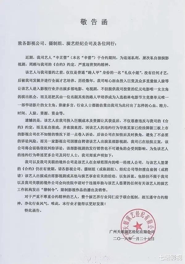 梁婷公司愤怒于“精心培养”的演员“背信弃义”,辛芷蕾这边也举步维艰,在公司声明发出后,行业肯定要避险,她一度9个月接不到工作。