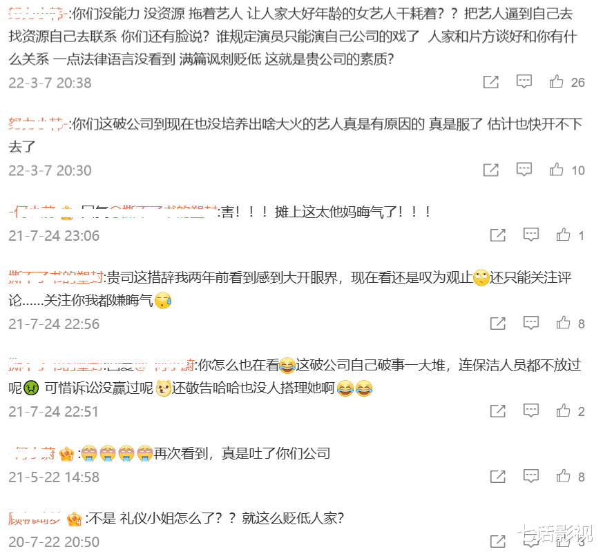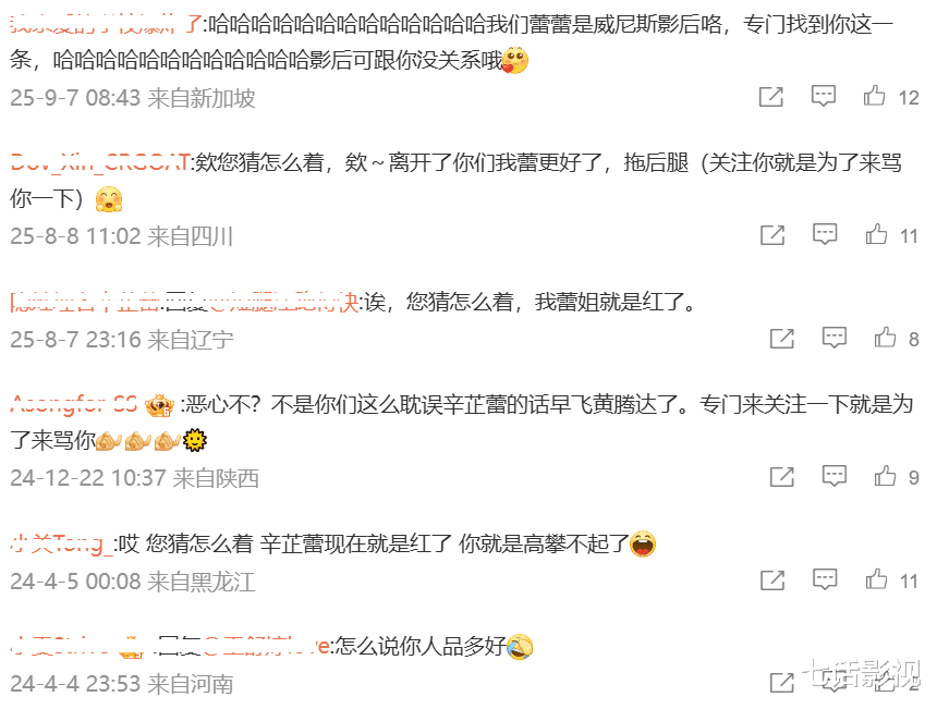 但等到《如懿传》等作品陆续上映,辛芷蕾口碑与人气逐渐打响后,评论区风向就完全变了,改为对辛芷蕾友好的网友“打脸”傲慢刻薄的前经纪公司。