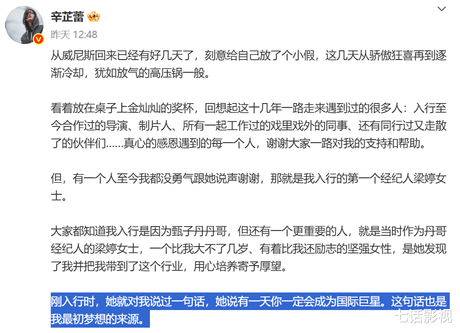 辛芷蕾拿到威尼斯影后咖位飙升,按照热搜规律,明星爆红必然经历了网友深挖考古日常,但考古还没进行太久,关于她的圈内大“八卦”也来了。