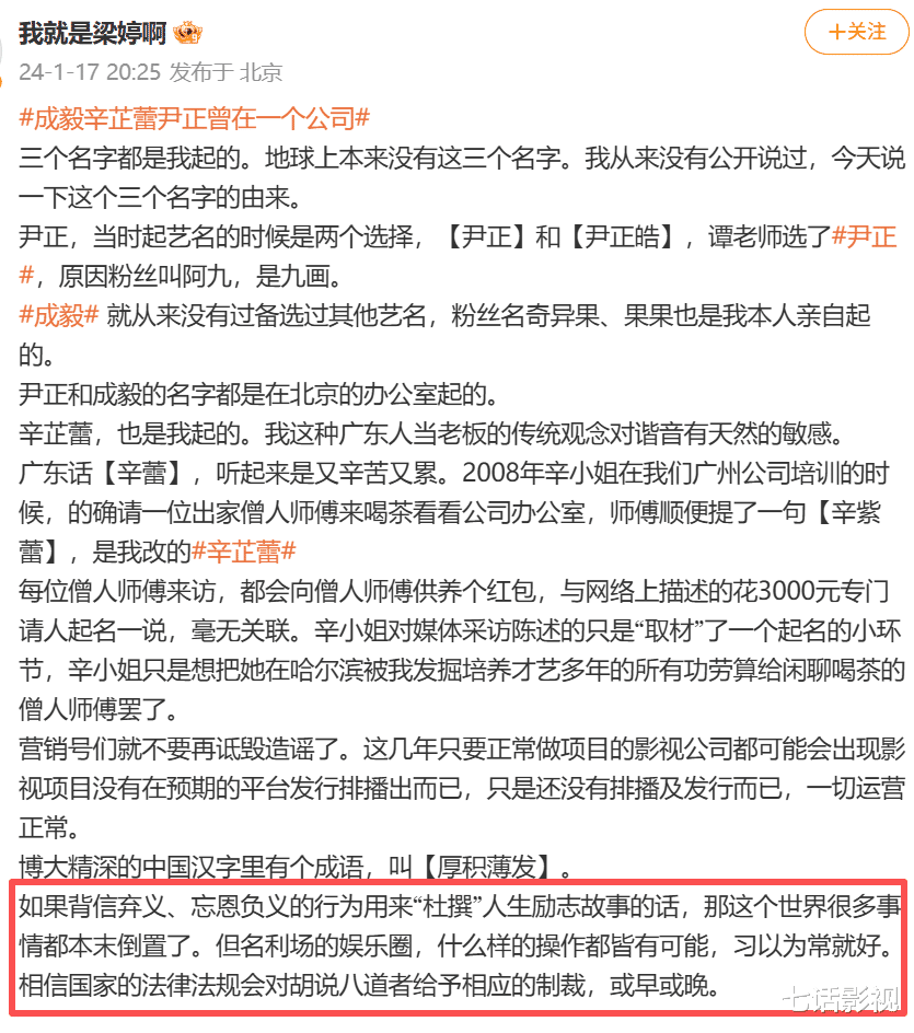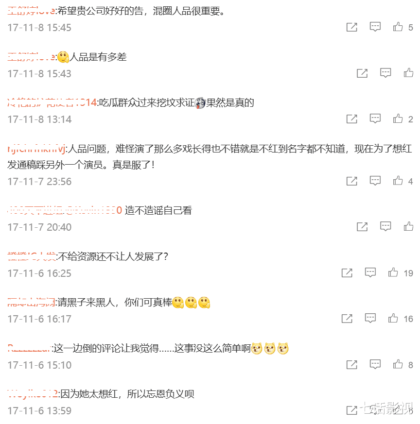 在前经纪公司发声明时,辛芷蕾还是业内小透明,而梁婷公司虽然不是行业数一数二,却也有甄子丹经纪人的名头,评论区基本上一水痛骂“白眼狼”。
