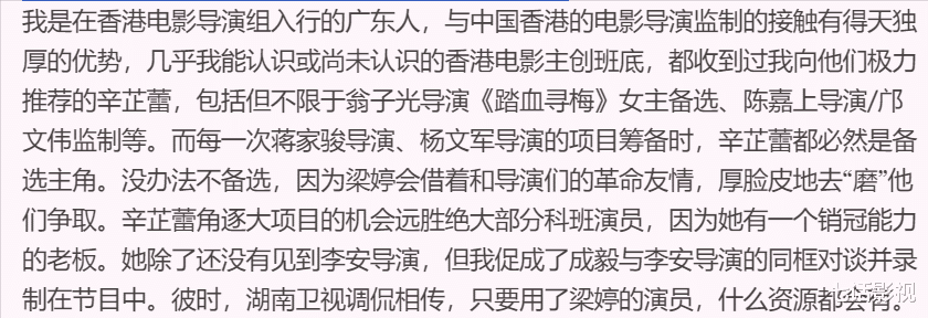 坐拥港圈资源的梁婷公司,在内娱这边竞争力有限,而她能给到的港圈资源,也需要辛芷蕾跟大量演员竞争,真正能落袋的其实不多。