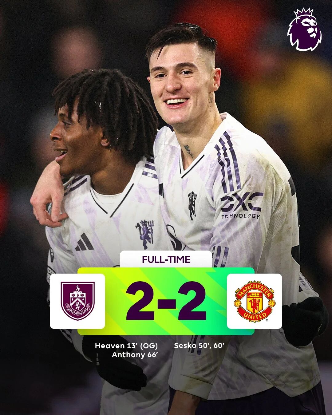 曼联在 弗莱彻 代理执教的首战中,面对降级区的伯恩利,狂轰30脚射门,却只换回一场 2-2 的平局。谢什科虽完成梅开二度,但球队后防的失误与进攻效率的低下,让三分变一分。