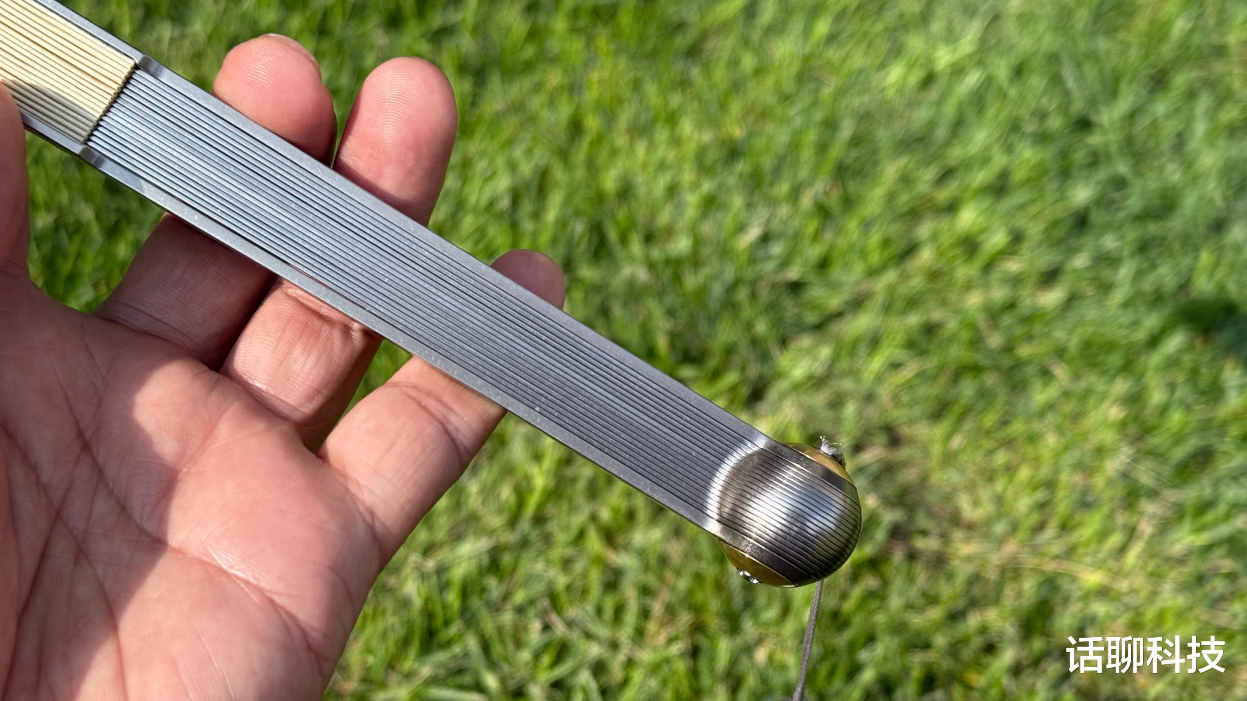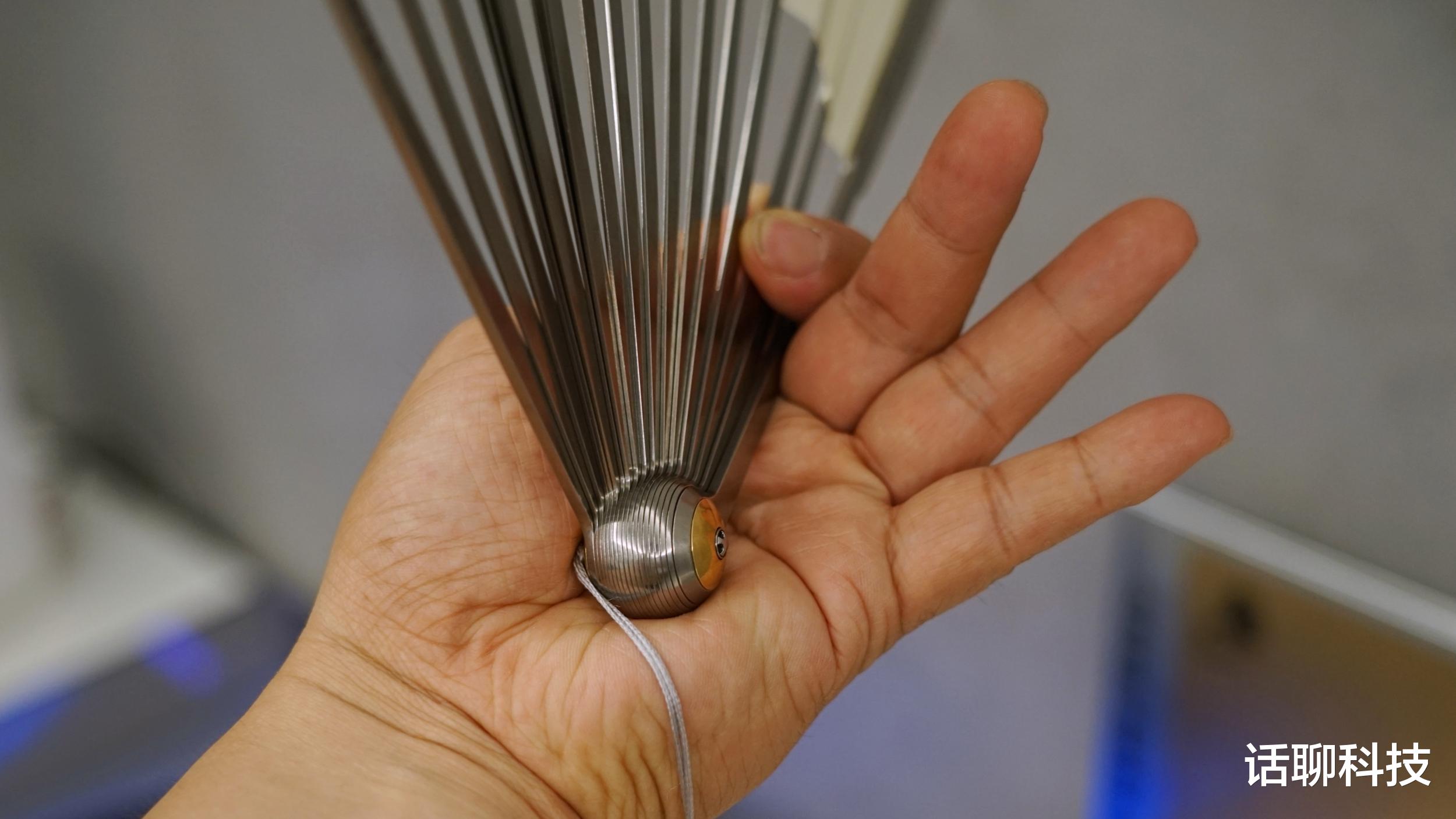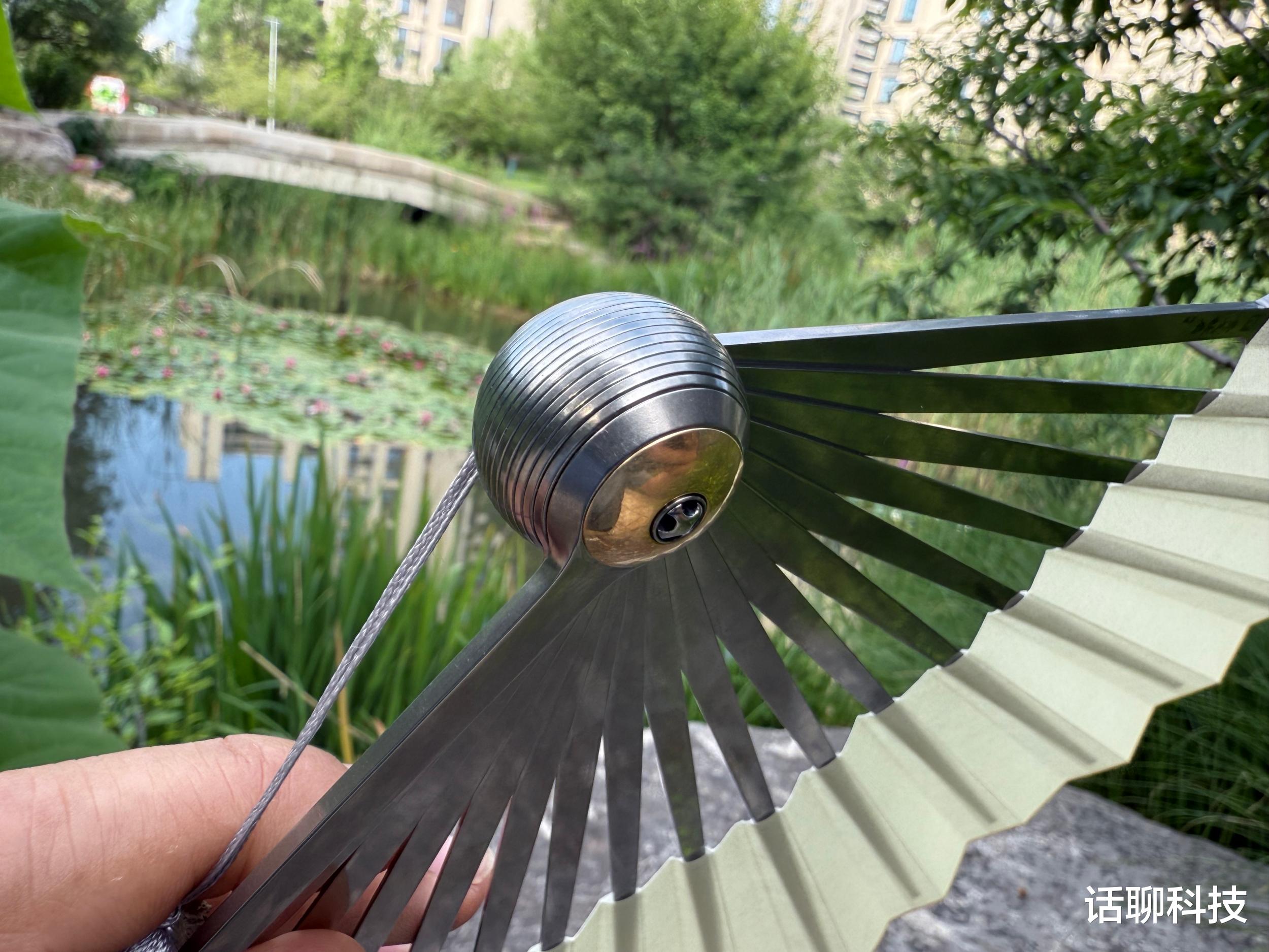 至于为什么叫和尚头,主要就是这个扇骨尾部做了特殊的圆头打磨处理。有人可能觉得这没什么了不起,传统的竹木折扇不就有这样的设计。但对于略懂钛合金这种材质的,都知道其不仅是材料本身比较好,而且加工超级黏刀,切割打磨抛光都几乎是不锈钢2-3倍的工时,现在高端手机把铝合金、不锈钢边框升级为钛合金边框,定价提高不少,成本也在于此。