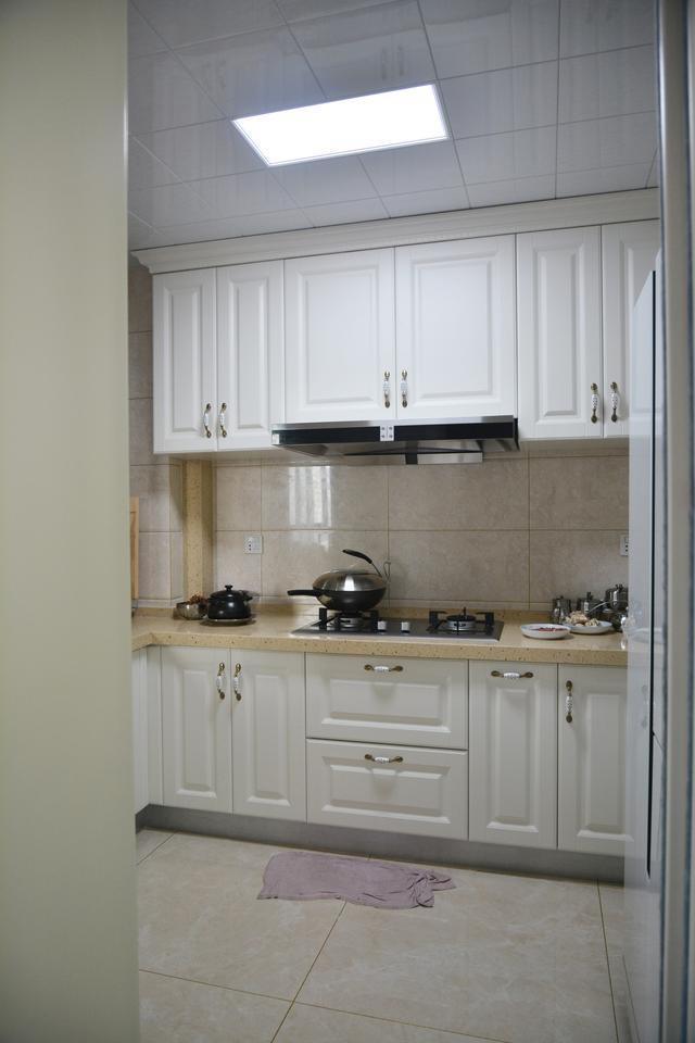 厨房内部的空间装饰简单,都是以实用为主,特别是橱柜和吊柜的设计,增大了厨房内部的收纳空间,让厨房保持整洁和干净。