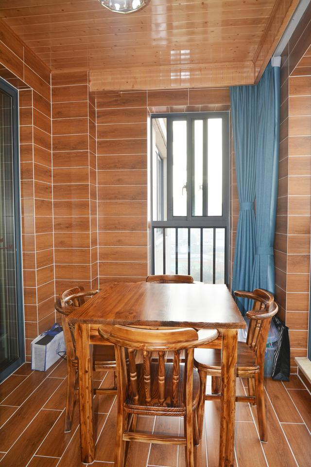 阳台做了封包的设计,整个实木板的装饰更为好看,再搭配上实木的休闲桌椅,平时家里来客人晚上在阳台上看风景聊天喝茶,非常的惬意和舒适。不仅采光好,通风也很好,冬暖夏凉。