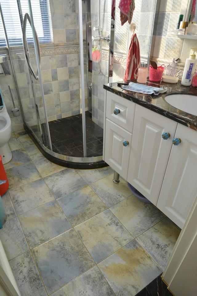 卫生间内部空间也是做了干湿分区,地面的瓷砖做了复古的瓷砖装饰,好看又大气,就连墙面的瓷砖也是做了彩色的装饰,好看极了,不会让卫生间太过于单调。