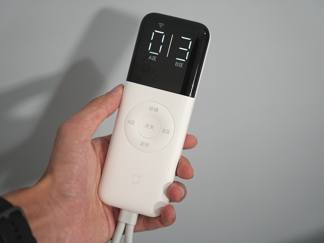 控制器的尺寸为158×57×20mm,体积不大,边缘也做得圆润,按键触感清晰,上床时随手一按就能看到工作状态,不会磕手或碍事。