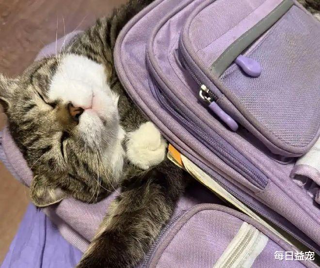 有悄悄把猫塞进书包结果拉链没拉好的;