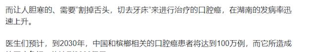 据专业机构预计,到2030年,中国与槟榔相关的口腔癌患者数量将飙升至100多万例,而由此产生的医疗负担更是高达2000亿元。