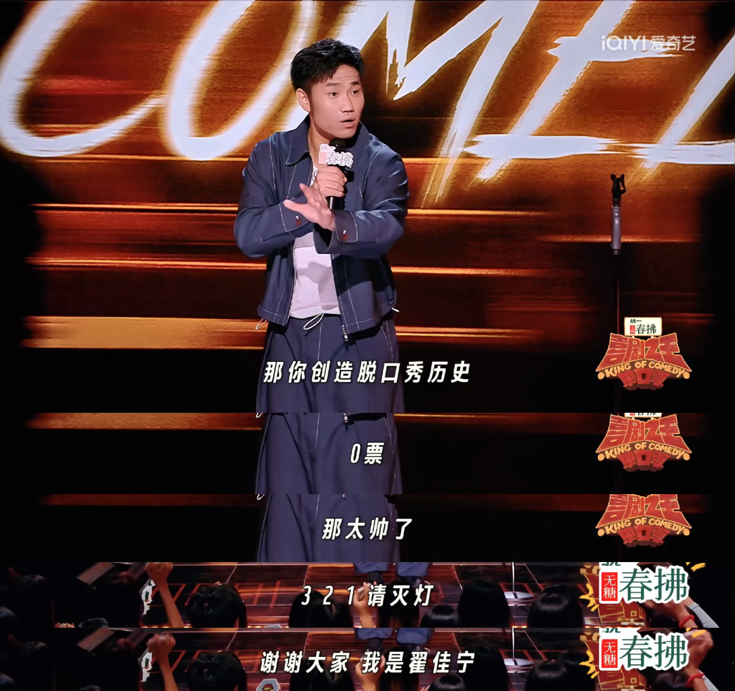 翟佳宁这个总冠军之路,小编愿称之为“炸场式胜利”。第一轮段子,他从节目发起人“从未到场”的梗开始,就让全场哄堂大笑得一发不可收拾。