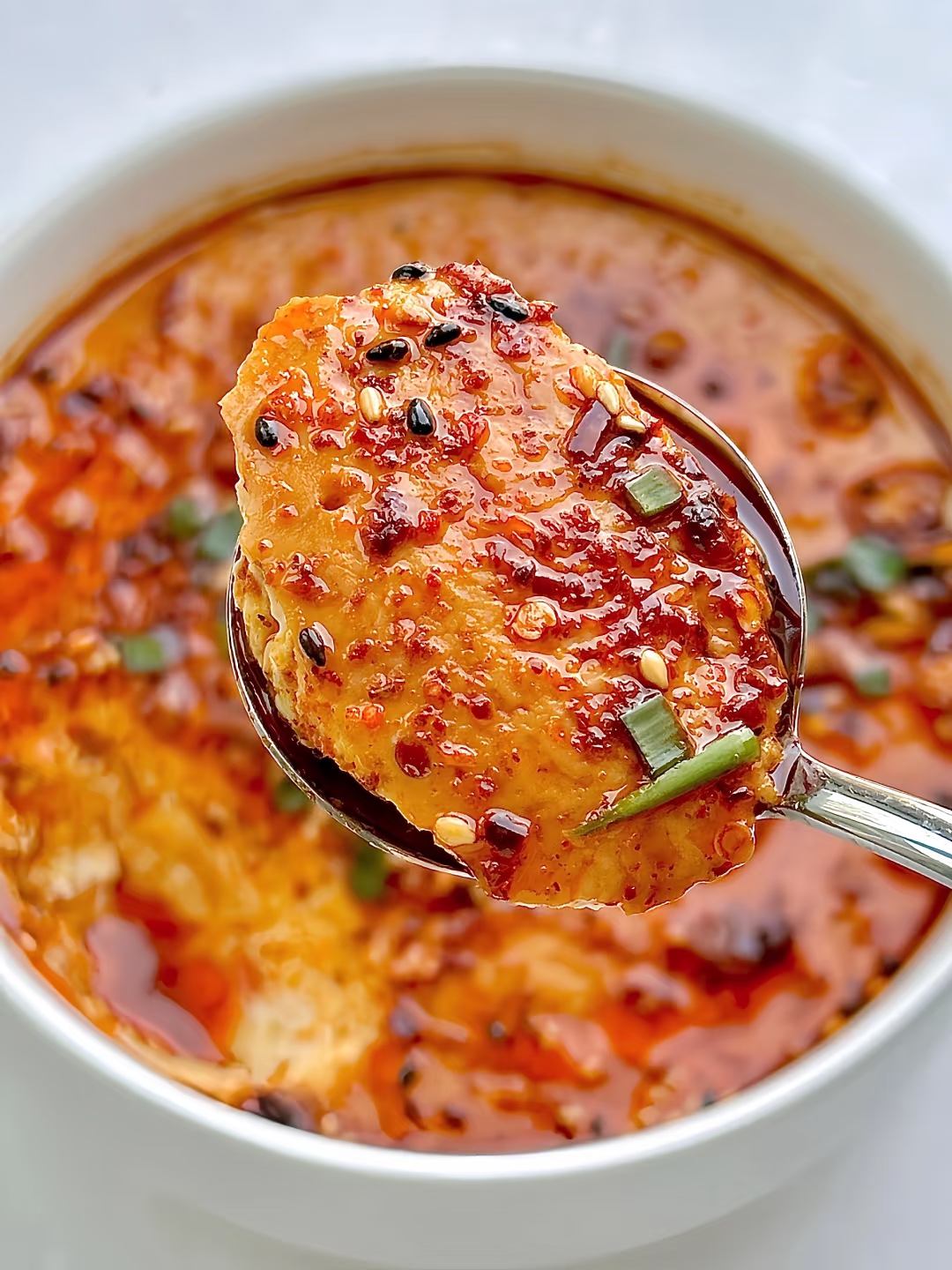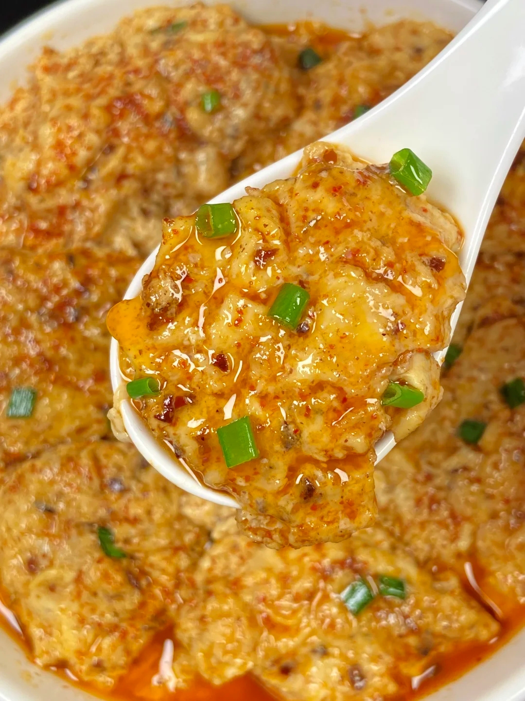 相传,江西的一位老奶奶为了让挑食的孙子多吃点饭,在传统水蒸蛋里加了一勺自家腌制的辣椒酱,没想到孙子吃得停不下来,这道菜也从此成了江西家庭的“哄娃神器”。如今,无论是早餐还是夜宵,一碗热气腾腾的辣味水蒸蛋,总能让人吃得满头大汗却欲罢不能。