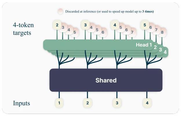 图:多Token预测技术允许模型在训练时同时预测未来多个Token,显著提升模型的响应速度