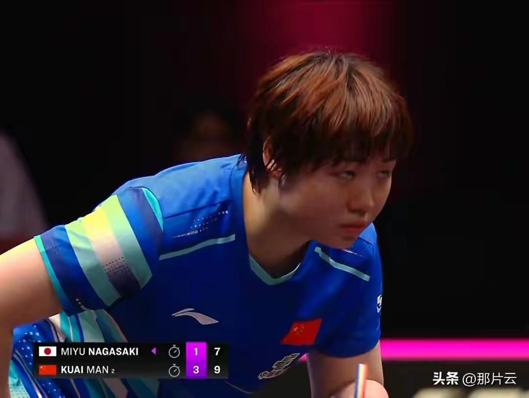 比赛伊始,蒯曼便迅速进入了比赛节奏,丝毫没有受到大赛气氛的干扰。首局比赛,她通过积极的抢攻和严密的控制,迅速在开局阶段建立起优势。长崎美柚虽然试图通过速度和变化来打乱蒯曼的部署,但蒯曼在关键球的处理上显得更加果断和细腻。随着比分的拉开,蒯曼没有给对手太多反扑的机会,以11比7轻松拿下首局,为整场比赛定下了胜利的基调。