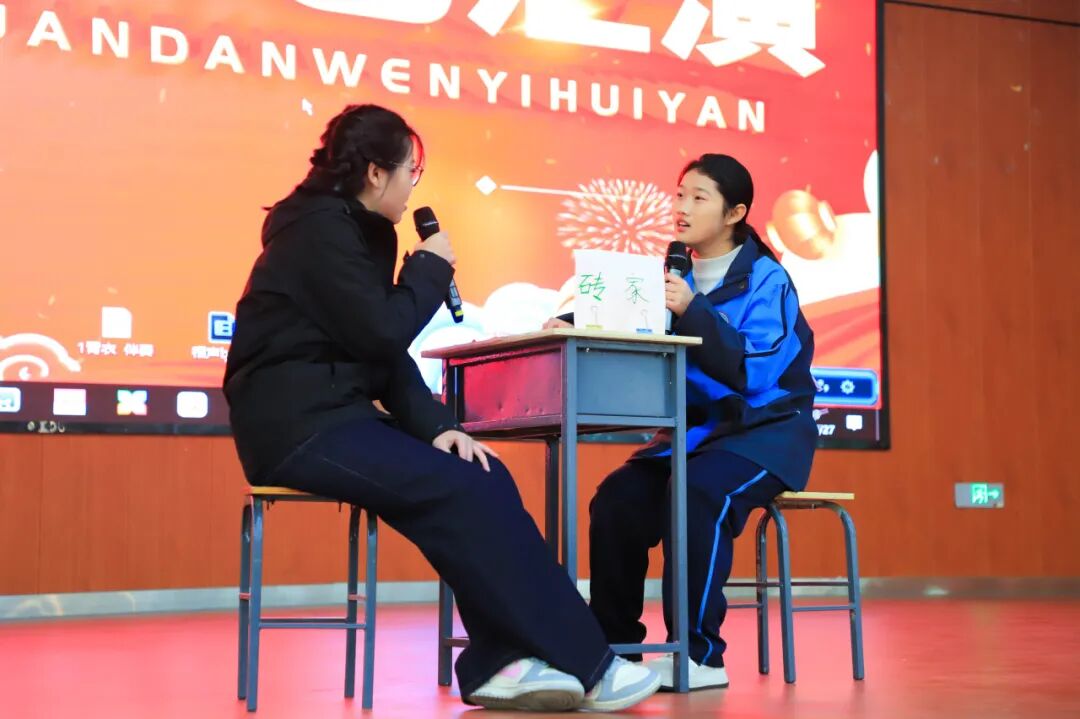 同学们以青春为笔,以梦想为墨,通过歌唱、武术表演、小品、器乐演奏、相声、贯口、朗诵、话剧等多种形式,尽情展现新时代宏达人的蓬勃朝气与多元才华——美妙悠扬的琴弦与歌唱奏响青春的节拍,铿锵有力的朗诵声颂出对祖国的热爱与未来的憧憬,磅礴迅捷的武术表演尽展少年侠骨与血脉豪情,引人入胜的小品探讨关怀与救赎的温情“良药”,诙谐幽默的相声、贯口让人在欢笑中思考生活,跌宕起伏的话剧演绎出校园的温情与趣味,每一个节目都充满了少年人的活力与赤诚。