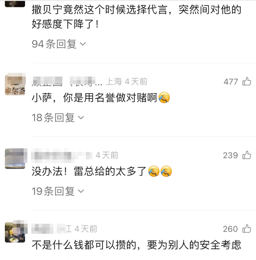 “给小米代言,对撒贝宁好感度下降了”“小撒,你是用名誉做对赌啊”“不是所有钱都可以赚的,要为别人的安全考虑”