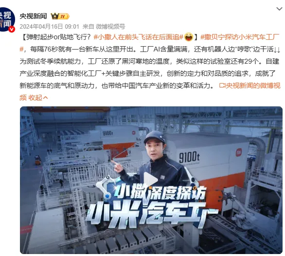 而值得注意的是,去年4月,央视曾专题报道过小米汽车工厂的视频,这期视频中也有撒贝宁出镜。