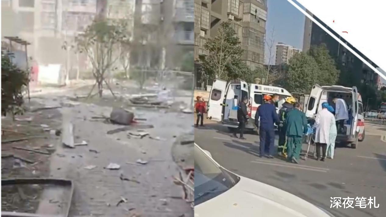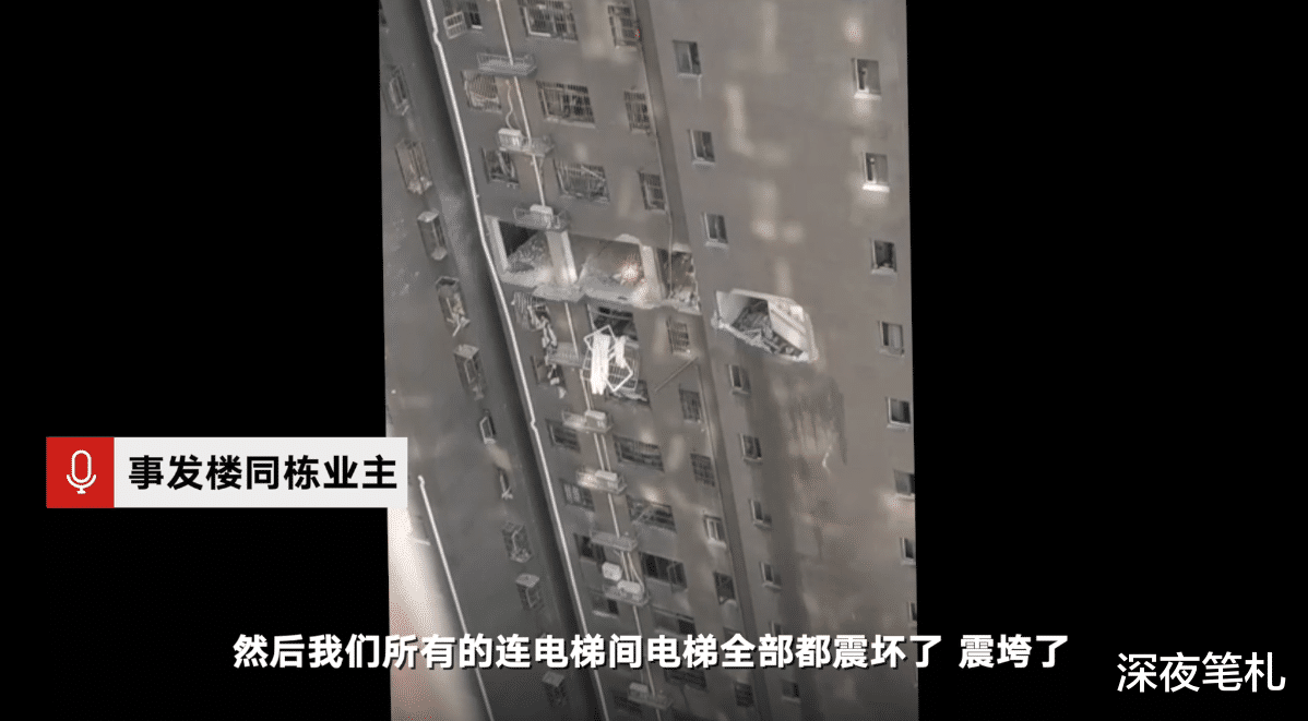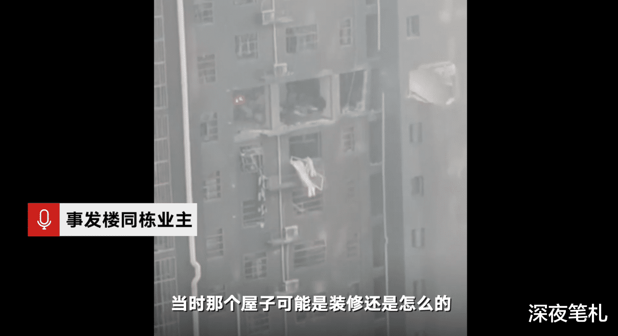 从网上流传的视频可以看出,爆炸房屋的墙体严重受损,窗户都被炸没了。小区地面散落着被炸飞石块、玻璃等,一根钢条还插在楼下私家车的车窗里面。而且视频中还可以看出有人从楼上被炸飞掉落到地上,地上聚集了大量围观的群众。