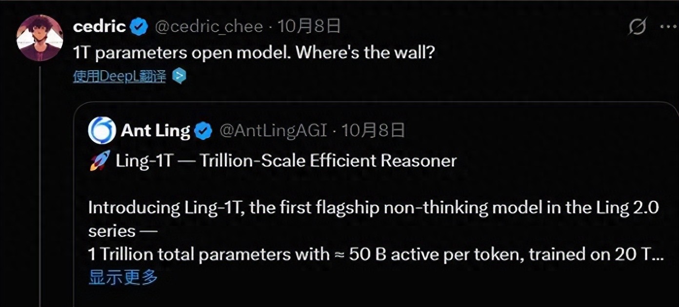 Ling-1T开源,x网友也对开源模型的体量感到震惊