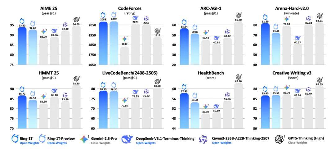Ring-1T 已成长为可与闭源产业论坛的成员,也是开源体系下闭源级绩效的又一个环节。