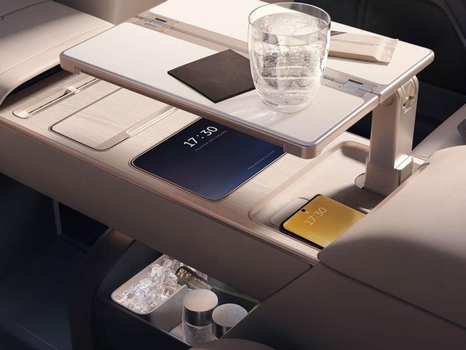 蔚来ET9的车身长宽高分别为5325mm、2017mm、1621mm,轴距长度为3250mm,标准大型车的尺寸,而且这款车采用行政四座座舱的设计,“天空岛”、“行政桥”的设计理念更是打造出头等舱的体验。所谓的行政桥,是指座椅中间长达2150mm、集成了10余项子系统的扶手设计,坐在后排,形成环抱式的座舱,还集成了中置环绕扬声器、电动滑动门冰箱、独立出风口、ARNC主动降噪、桌板、高速无线充带你、后排娱乐屏等配置。