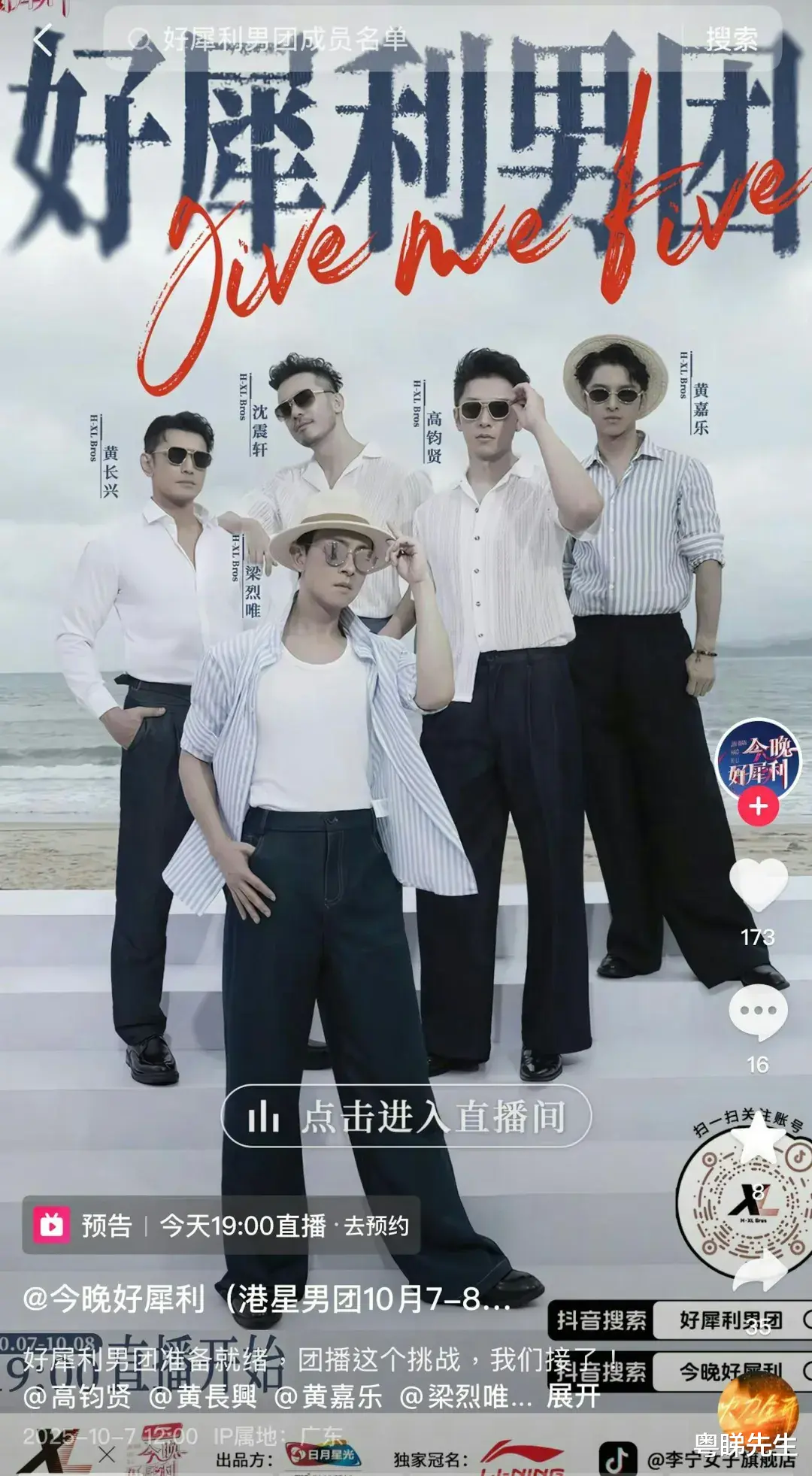 梁競徽、高鈞賢、沈震軒、黃長興及黃嘉樂再組成「好犀利男團」。(抖音)