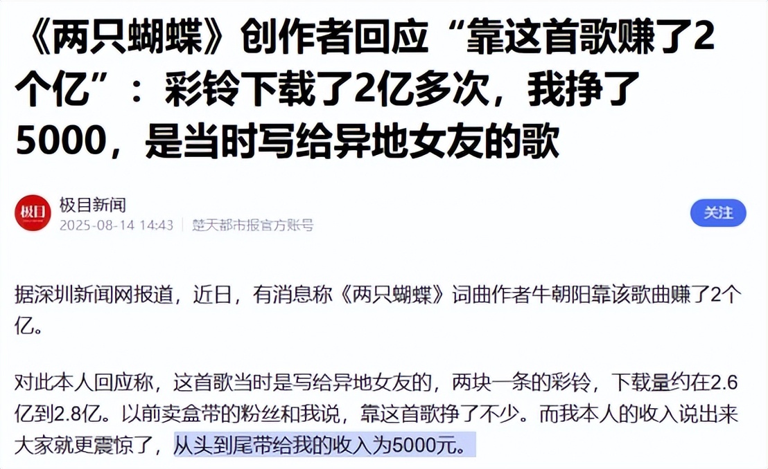 这边平台赚大钱,那边写歌的人却连饭都吃不上,甚至连直播间哼两句都要开始收费了,听歌的人不爽,写歌的人也不爽,这钱到底去哪了?