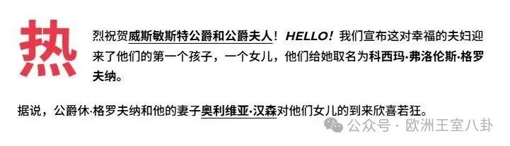 7月则是被瓜路盯了很久的百亿baby,威斯敏斯特公爵休和老婆奥莉薇亚的第一个孩子出生:名叫柯西玛的闺女
