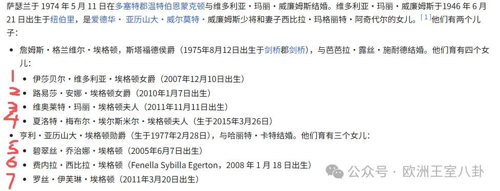 顺带一提姓白求恩的那个林赛伯爵,从6月继承老大婚礼大合照看这两年新增了老多小妹子,其中包括次子大卫和次媳凯特的闺女乔治亚娜(生于2月)