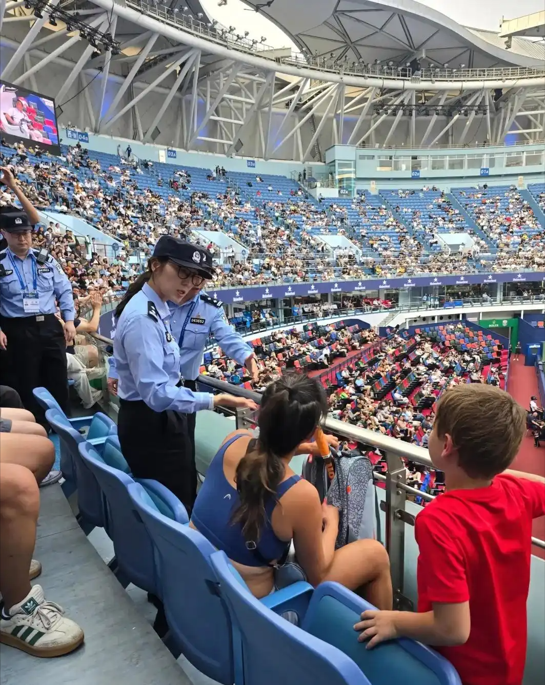 这起事件发生在意大利球员贝雷蒂尼与法国球员马纳里诺的比赛中。根据警方的通报,谢某某是酒后在观赛期间持续大声喧哗,严重扰乱赛场秩序,甚至导致比赛一度被迫暂停。现场的视频显示,她不仅发出刺耳的尖叫声,还对着几米外的安保人员做出各种挑衅动作。