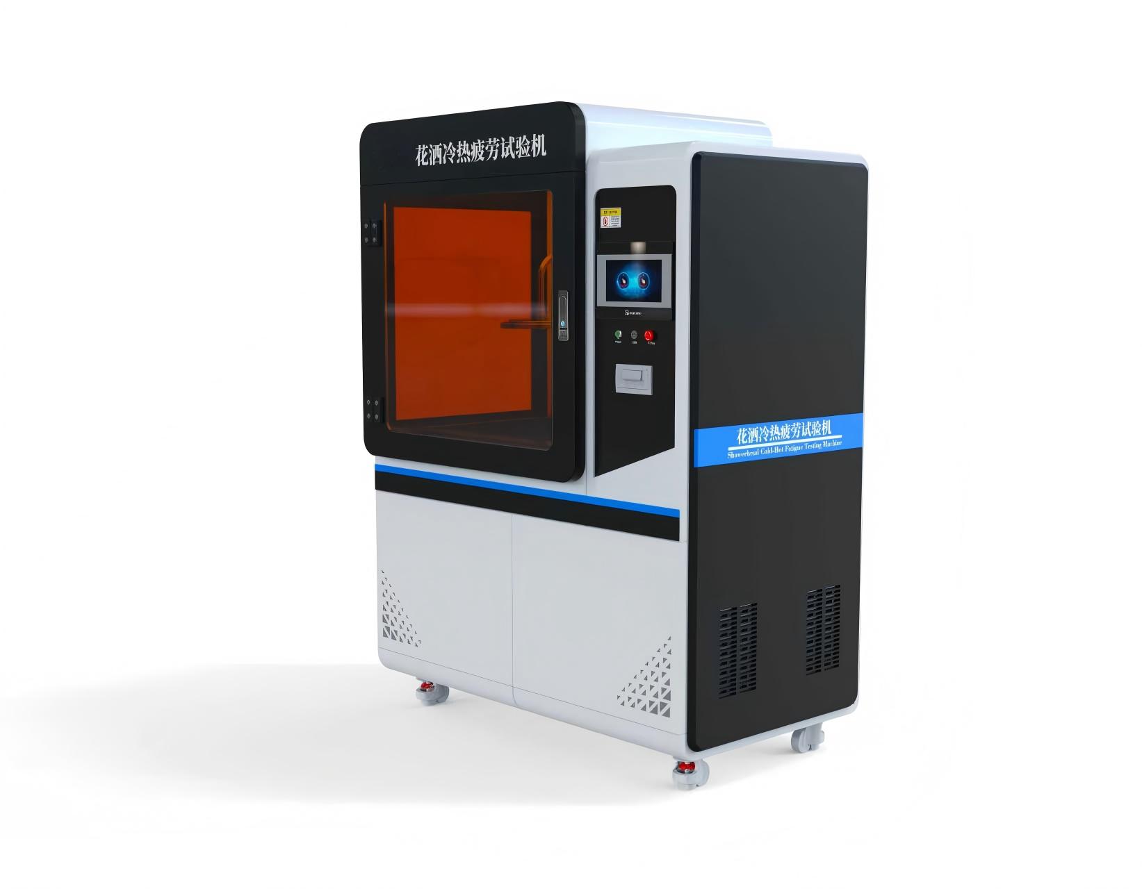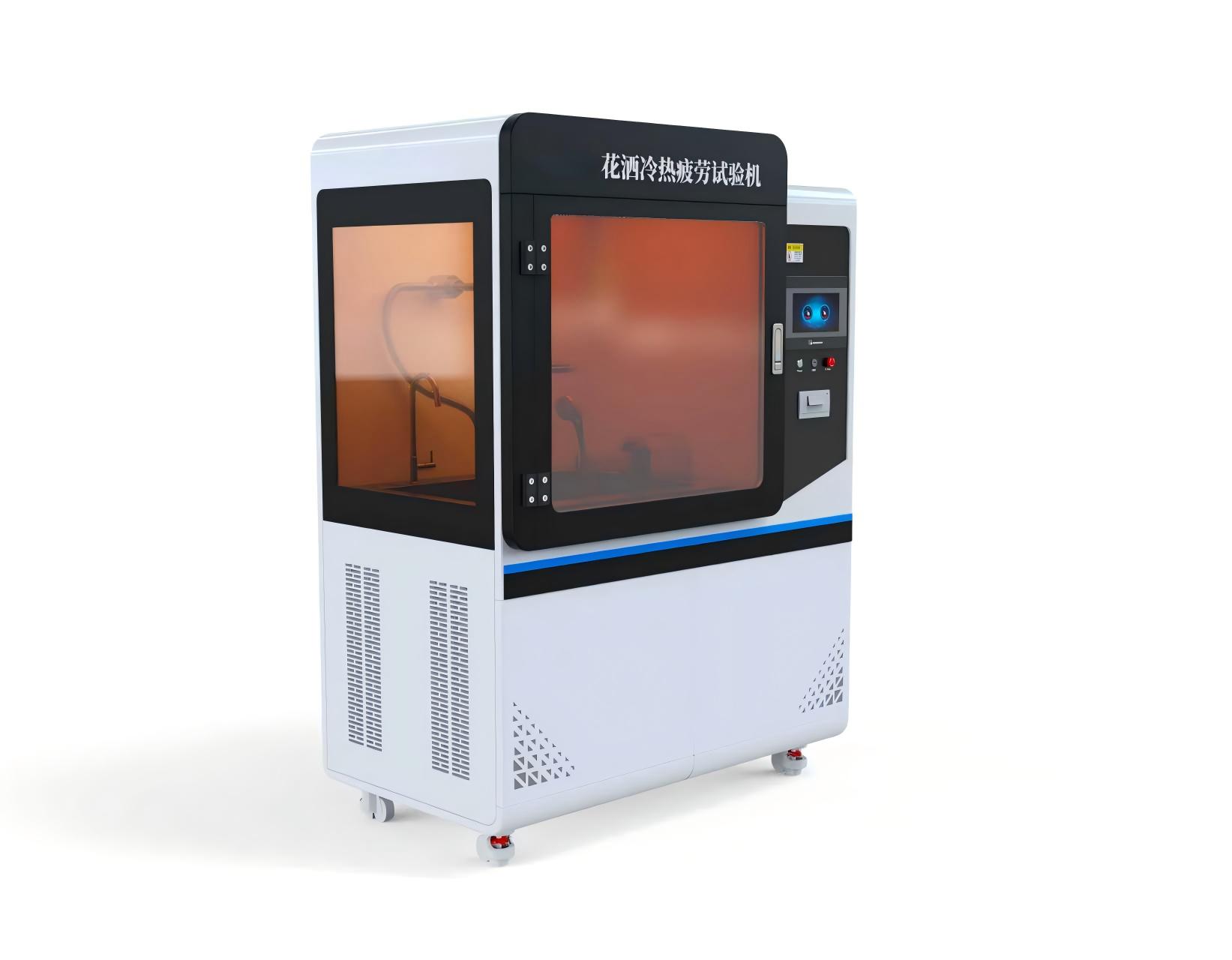 花洒作为卫浴产品的核心组件,其在日常使用中频繁经历冷热水交替冲击,易因温度变化和压力波动产生疲劳裂纹、变形、漏水等失效问题,直接影响产品使用寿命和用户使用安全。为满足花洒产品出厂质量检验及研发过程中的性能评估需求,依据相关国际及国家标准,特研发本花洒冷热疲劳试验机,通过模拟实际使用场景中的冷热水交替环境,精准检测花洒的耐冷热疲劳性能。