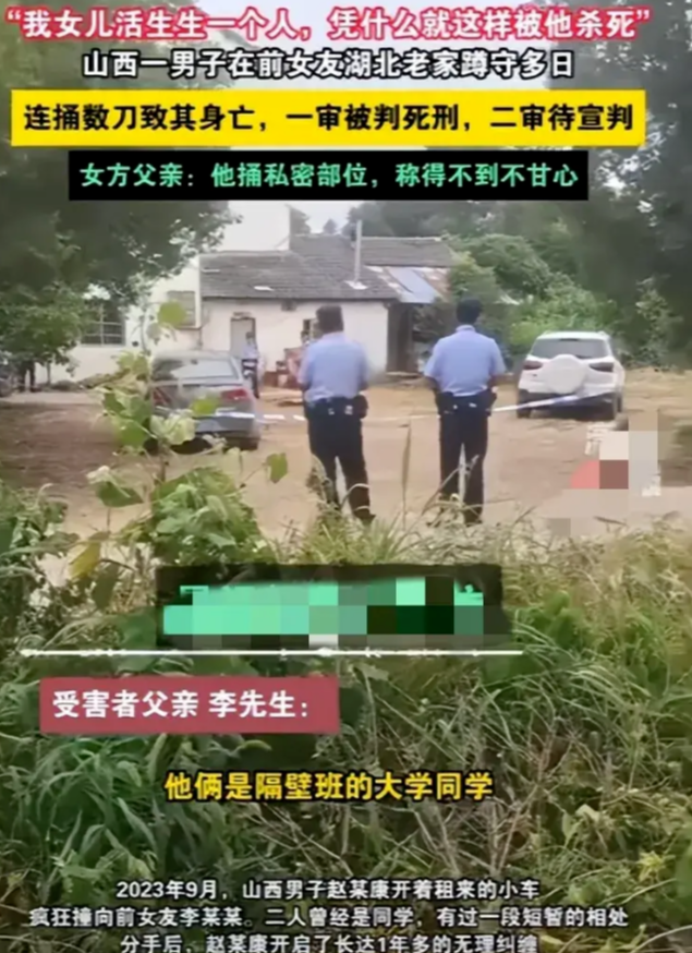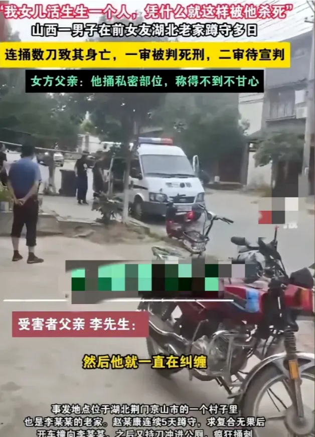 2023年9月,男子在前女友老家蹲守几日继续纠缠,求复合遭拒后,男子处于疯狂失控的边缘,竟然开着租来的车朝前女友加速撞了过去,前女友吓得躲进附近的公厕,失去理智的男子掏出随身携带的刀具冲进公厕,朝前女友疯狂地捅刺了30几刀。