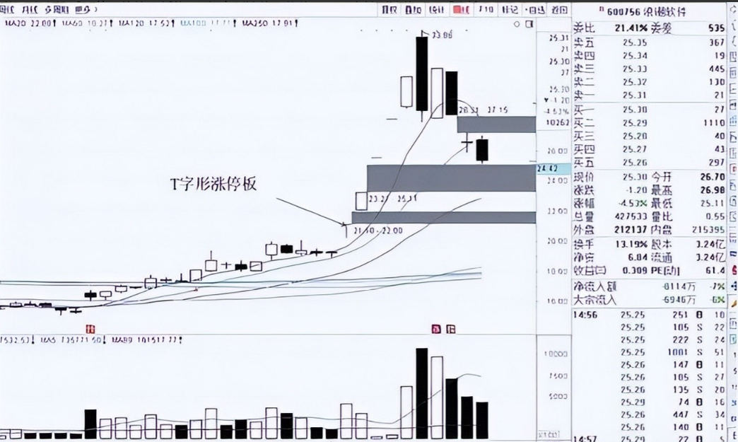 需要注意的是,T字形涨停板切忌开板就追,以免陷入出货或洗盘的陷阱之中。为提高成功概率,一定要保证天线上穿了人线,且放量拉升时再进行追进。