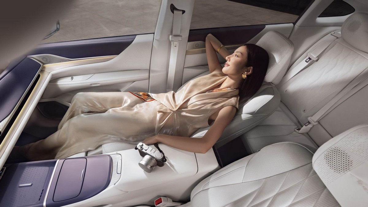 四座悬浮层座椅的设计是车内空间的一大亮点,副驾搭载的120°零重力座椅,配备可伸长103mm的4向电动腿托,一键躺睡功能让乘客在旅途中能够迅速缓解疲劳。高配车型后排搭配中央扶手智能触控板,可轻松控制腰托、按摩、加热、通风等功能,为后排乘客提供了极致的舒适体验。