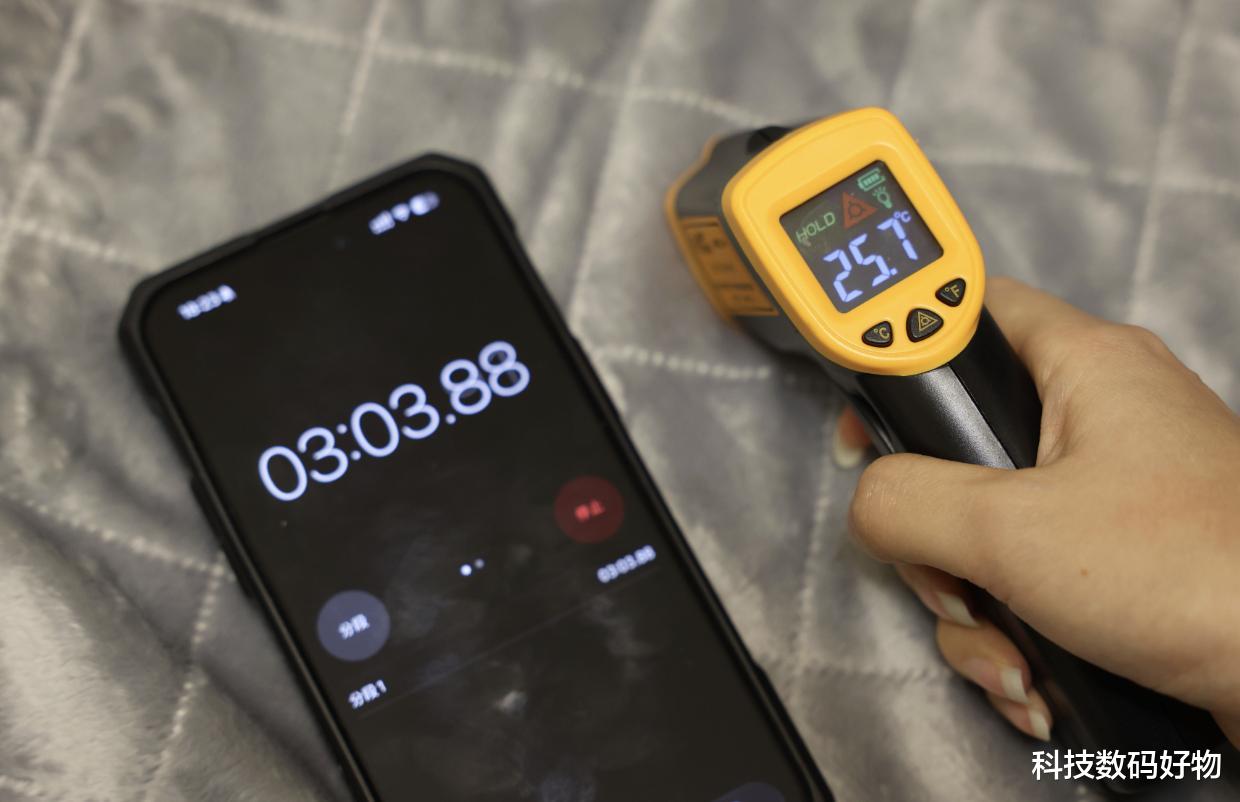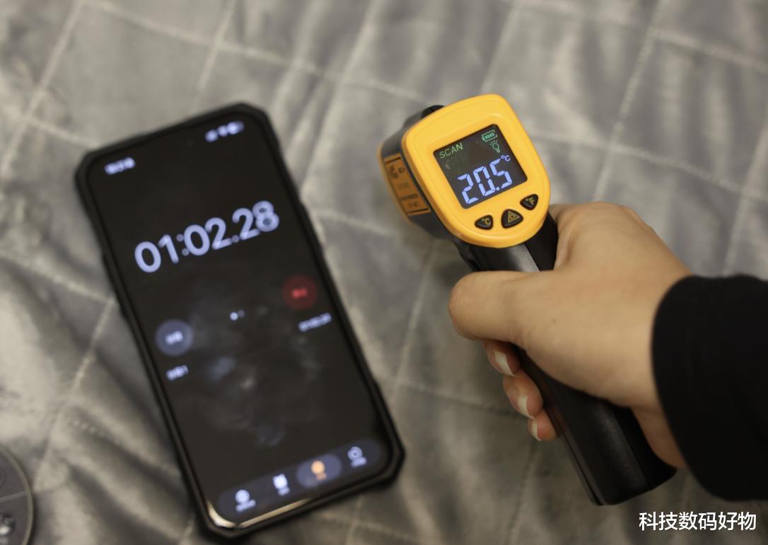 我把目标温度设在35℃,同时按下秒表+红外测温仪: