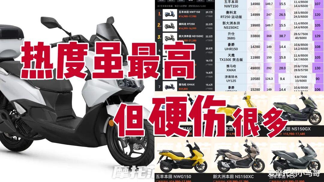 2025年底最热门的踏板车型是谁?想必最近常逛各大摩托车圈子的朋友已经猜到了答案,那就是——五羊本田NWT150,至于原因嘛~其实就两点:“价格便宜配置丰富”和“本田商标”。但其实这款车个人觉得还是有几个挺大硬伤的,所以接下来咱就结合市面上的踏板车型来盘一盘,五羊本田NWT150究竟值不值得入手,以及这些硬伤都是什么?