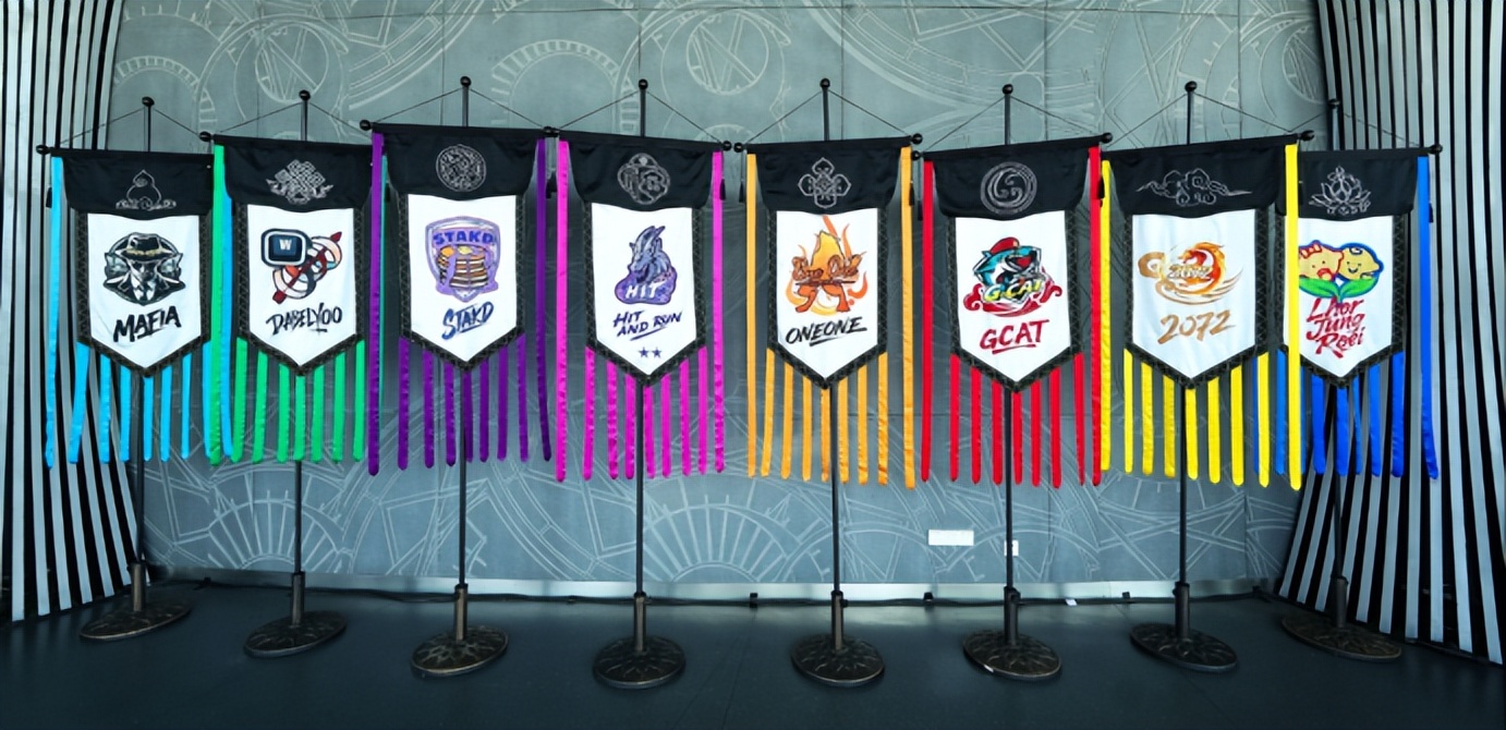 场馆内的苏绣战旗展区更让人眼前一亮。这八面由非遗传承人张雪老师亲手绣制的战旗,把钢铁电竞与江南雅致玩出了新高度。看似硬朗的战队几何 LOGO,经 “平、齐、细、密” 的苏绣技法勾勒,各个战队的logo都彰显的自己的特色,非常亮眼,也让不少玩家驻足良久,感慨 “苏绣以至柔之丝缝制出了至刚之魂”。