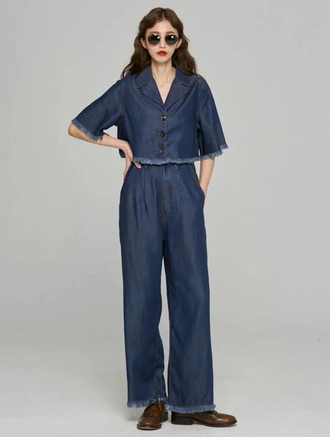 如果你想找适合夏天的牛仔面料,你可以选天丝牛仔。它的触感超冰凉,垂度好且不易皱,透气,穿着舒服。