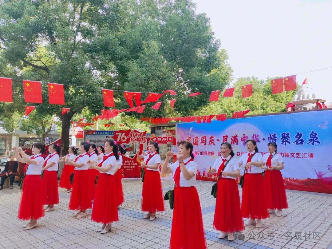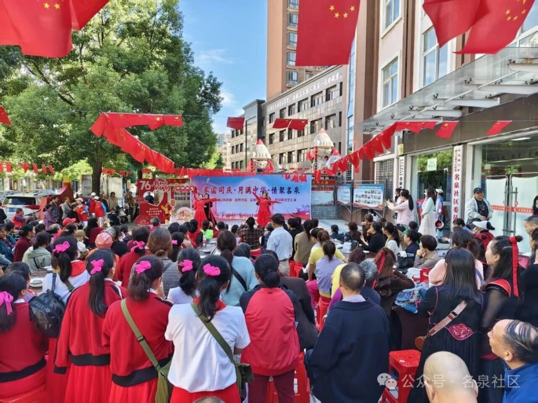 近日,名泉社区新时代文明实践站在社区门前广场成功举办了“家国同庆 月满中华 情聚名泉”迎国庆庆中秋文艺汇演活动。 本次迎国庆庆中秋文艺汇演活动取得了圆满成功,得到了社区居民的一致好评。通过这次活动,不仅传承了中秋团圆文化和爱国主义精神,增进了邻里之间的感情,也激发了社区居民的凝聚力和归属感。