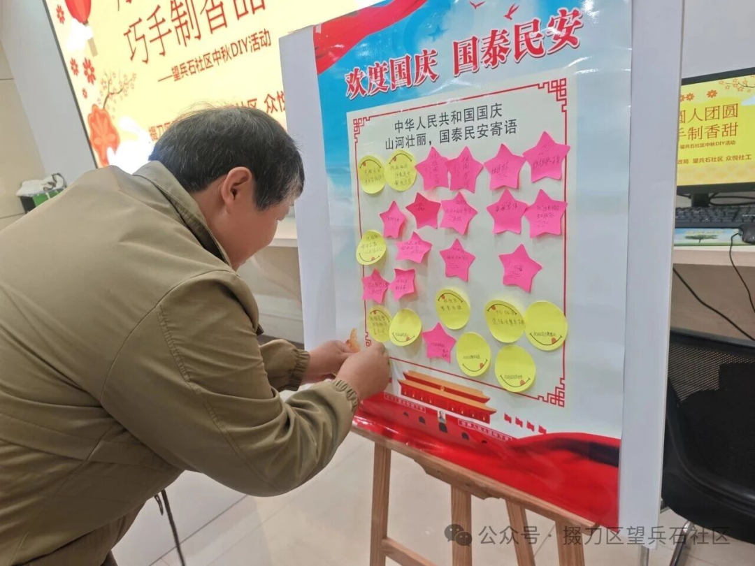 此次活动不仅让居民体验到传统节日的文化魅力,更通过亲手制作、互动祝福的形式,增强了社区凝聚力,展现了望兵石社区邻里和睦、守望相助的温暖氛围,实现了“小家庭”团圆与“大家庭”祝福的完美融合。