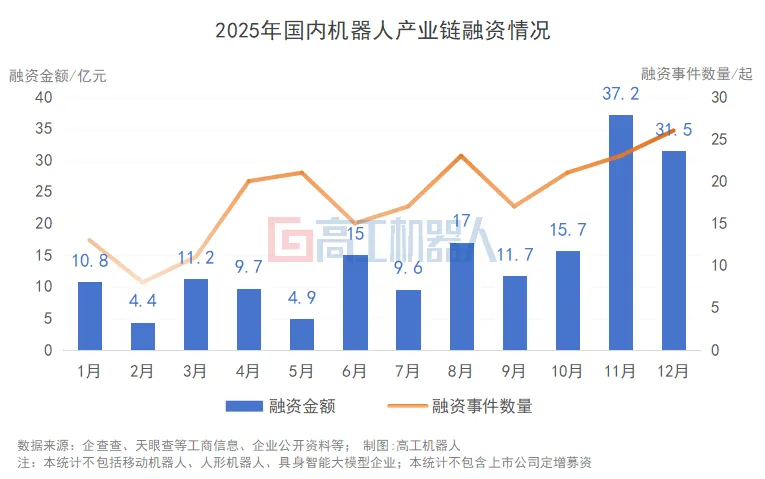 7. 2025年机器人产业链215起融资披露,超180亿元流向核心零部件领域